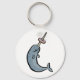 Ici, on voit un dessin animé de narwhale jouant avec un beigne glacé rose.