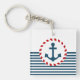 Design nautique avec décoration d'ancre en forme ronde sur bleu et blanc rayé arrière - plan