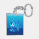 Porte - clé acrylique moderne du milieu du siècle - peinture numérique géométrique d'un navire à clipper dans les tons bleu océanique, de l'aqua clair au cobalt profond