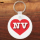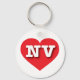 Ce porte - clé est doté d'un coeur rouge vif contenant les lettres coques supérieures et audacieuses NV, l'abréviation officielle de l'état du Nevada, l'état argenté.