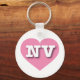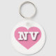 Ce porte - clé est doté d'un coeur rose cool calme contenant les lettres coques en haut, blanc et gras NV, l'abréviation officielle du Nevada, l'état argenté.