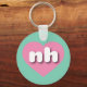 Ce porte - clé est doté d'un coeur rose vif contenant les lettres coques nh, blanches et arrondies, une abréviation ludique pour le New Hampshire, l'état granitique.