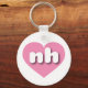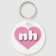 Ce porte - clé est doté d'un coeur rose vif contenant les lettres coques nh, blanches et arrondies, une abréviation ludique de l'état du New Hampshire, l'état granite.