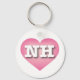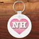 Ce porte - clé présente un coeur rose collé et calme, avec un centre blanchi à la chaux contenant les lettres coques supérieures et chaudes NH, l'abréviation officielle du New Hampshire, l'état granitique.