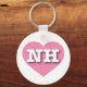 Ce porte - clé est doté d'un coeur rose vif contenant les lettres coques supérieures et audacieuses NH, l'abréviation officielle du New Hampshire, l'état granitique.