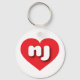 Ce porte - clé est doté d'un coeur rouge vif contenant les lettres coques inférieures arrondies et blanches nj, une abréviation ludique pour le New Jersey, l'état du jardin.