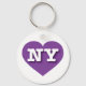 Ce porte - clé est doté d'un coeur violet plein de vitalité, contenant les lettres coques supérieures et audacieuses NY, l'abréviation officielle de New York, l'état empire.