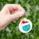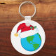Un globe du monde avec un casquette de noël dessus. Cette conception semble vraiment efficace sur ce Porte - clé