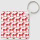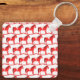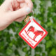 Ce porte - clé de Noël à double face amusant présente une image art numérique d'un mignon cheval à bascule de style scandinave. Le cheval est rouge avec une crinière rouge foncé, la queue et les sabots. Le cheval sympathique sourit. Il a une selle blanche et des rois avec de jolis motifs de style Scandi rouge sur la selle, y compris le soleil, la lune et les étoiles, les coeurs et les fleurs. La base du cheval rocking est rouge et est couverte de feuilles blancs. Le design a été inspiré par le cheval suédois Dala. Il y a du texte personnalisé pour que vous puissiez personnaliser ce design avec votre propre message.