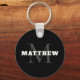 Porte-clés Noir Blanc Gris Nom Monogramme Minimal