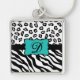 Profitez de ce porte - clé sophistiqué et élégant avec votre monogramme initial. Les rayures colorées de zèbre et les peaux de léopard ou de guépard pour le design graphique sont l'une des tendances artistiques et design les plus chaudes, et est extrêmement populaire de la mode à la décoration maison. Ce noir et blanc sophistiqué avec zèbre gris ou gris et motif empreinte de léopard est disponible en plusieurs combinaisons de couleurs. Un emblème bleu turquoise turquoise crée une zone de personnalisation avec votre monogramme. Ceci est entièrement personnalisable. Allez-y avec ces modèles de peaux sauvages !