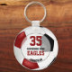 Ce porte - clé de football personnalisé pour les garçons aux couleurs de l'école noire et rouge dispose d'une balle de football simple et classique avec des panneaux noirs, rouges et blancs - customisez le nom du joueur et son numéro de maillot ainsi que le nom de l'école et de la mascotte de l'équipe - par katz_d_zynes