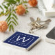 Un design monogramme élégant sur arrière - plan bleu marine avec bordure carré, personnalisé avec vos initiales et prénoms de famille...
