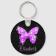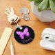 Forme de papillon aux nuances violettes et étoiles brillantes en rayures horizontales. Arrière - plan noir. Customisez et ajoutez votre nom avec des lettres violettes.