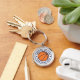 Porte - clé ronde avec un basket et un texte personnalisé, par exemple un nom et une équipe de basket, entourée d'une bordure bleue sur un arrière - plan blanc. Modifiez les polices et les couleurs, déplacez et redimensionnez les éléments à l'aide de l'outil de conception.