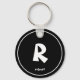 Porte-clés Nom initial de monogame noir et blanc personnalisé