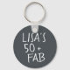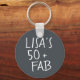 Porte - clé moderne et élégant 50ème anniversaire avec le texte cinquante et fabuleux en noir élégant script. Ajoutez simplement votre nom à ce porte - clé personnalisé de célébration du 50e anniversaire. Un cadeau d'anniversaire parfait pour un 50 ans moderne, élégant et élégant. Conçu exclusivement pour vous par Happy Dolphin Studio !