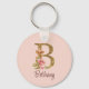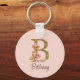Porte-clés Nom personnalisé Blush Rose Lettre B en feuille d'