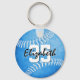 Ce porte - clé de softball présente l'image d'un softball bleu avec le nom du joueur et le numéro de maillot facilement personnalisables - par katz_d_zynes