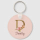 Porte-clés Nom personnalisé Or Feuille Rose Pâle Roses Lettre
