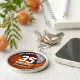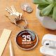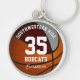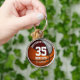 Ce porte - clé sportif sur le thème du basket-ball pour les filles et les garçons présente un graphique simple de basket-ball avec deux panneaux recolorés, un marron et un gris, et facilement personnalisable, le nom de l'école, le nom de la mascotte et le nom du joueur et le numéro de jersey - par katz_d_zynes