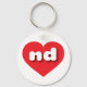 Ce porte - clé est doté d'un coeur rouge vif contenant des lettres coques inférieures arrondies, blanches et audacieuses, et d'une abréviation ludique pour l'état du Dakota du Nord.