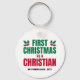 Élégant PREMIER NOËL EN TANT QUE NOUVEAU porte - clé CHRÉTIEN avec TEXTE ET DATE PERSONNALISABLES. Le design montre la typographie en sans serif verte et rouge de Noël avec des éléments saints rouges et verts. Un grand porte - clé festif pour un nouveau croyant chrétien. Vous pouvez PERSONNALISER LE TEXTE avec votre nom, vers biblique préféré, ou d'autres textes et année (ou supprimer). Idéal comme marchandise de Noël d'église pour les nouveaux croyants célébrant leur premier Noël chrétien. On peut les donner comme des farces de bas et des cadeaux de faveur. Offres assorties disponibles.