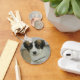 Un porte-clés de style bouton avec Spike, un chien secouru Nowzad.
