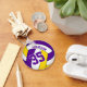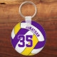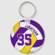 Ce porte - clé de volleyball violet, jaune et blanc dispose d'un volleyball tricolore sur lequel vous pouvez customiser le nom du joueur et son numéro de maillot - par katz_d_zynes