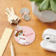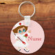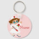 The perfect key chain for any nurse. Cute cartoon graphics of a nurse in white uniform, holding a big thermometer. A pink back ground and red text reading Nurse gives this key chain a fun whimsical look. Customize the text to read anything you want.