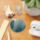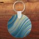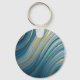 An abstract, fluid painting dominated by rich, deep, and luminous shades of blue, ranging from dark sapphire to lighter cerulean. The colors are applied in concentric and wavy stripes, creating a sense of dynamic, circular motion, reminiscent of water, waves, or agate stone. Striking, meandering lines of metallic gold weave across the surface, following the blue waves and providing a dramatic, luxurious contrast. The overall impression is one of elegant movement, depth, and richness.