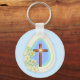 Croix en bois brillant est encadrée de Lilies blanches et d'oeuf de fenêtre pour symboliser la renaissance. L'arrière - plan est un joli aqua ombragé. Un joli design religieux symbolique.