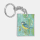 © D Salusti/Apple sauvage. Un oiseau bleu avec un corps jaune était perché sur une branche. L'oiseau a les plumes noires et blanches sur leur visage.