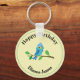 Elégant et élégant oiseau bleu avec arrière - plan jaune et bordure verte, vous pouvez customiser le texte et la photo du format .png, avoir un joli anniversaire.