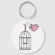 Un petit oiseau rose satisfait vole libre de la cage d'oiseau.