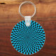 Un design de style Op Art circulaire à deux tons qui est composé de cercles de rayons, chacun décalé pour créer un motif alternatif.