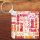 Montrez votre gratitude à un porte - clé. Ce design présente un collage de typographie "Merci" rouge et orange multilingue dans une variété de styles de police sur le blanc d'un côté et le texte modèle de l'autre. Personnalisez ou supprimez le texte modèle ou cliquez sur personnaliser pour sélectionner un style de police, une taille et une couleur que vous préférez.