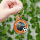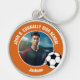 This cool customized high school soccer player photo gift features white typography of your team and player name on an orange keychain with a soccer ball. Personalize with your student's photograph as a proud futbol parent.