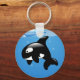 Caricature adorable chubby Orca baleine avec un petit coeur blanc près de sa queue.