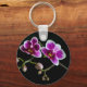 Porte-clés Orchidée rose blanc couleur sur noir pâle doux