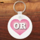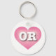 Ce porte - clé est doté d'un coeur rose avec un centre blanchi contenant les lettres coques supérieures OR, en gras, blanches, l'abréviation officielle de l'Oregon, l'état castor.