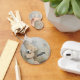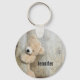 Un porte - clé avec une photo de chéri d'un mignon ours en peluche, debout près d'un mur en bois rustique / fond.