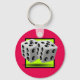 An illustration of a pair of white dice with black dots. Background is created with some groovy neon colors in lime green and cherry red.