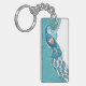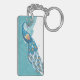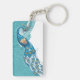 Porte-clés Paon sur l'illustration turquoise