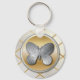 Papillon d'argent et d'or avec un effet surélevé sur un arrière - plan à texture or. sgb01