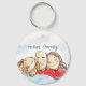 Ce porte - clé a une illustration d'un mignon chiot et de ses parents, d'un chauve-souris et d'une brune. Vous pouvez customiser le texte.