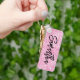 Créez votre propre porte - clé en métal rectangle long pour elle avec un dessin d'art numérique en parties scintillant rose pâle de luxe. Modifiez le script de calligraphie de style de brosse à lettres manuscrites moderne pour créer votre propre design de texte personnalisé unique. Customisez le style de police et la couleur dans cette conception.