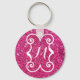 Ajoutez un style personnalisé à vos accessoires avec un porte - clé sur mesure. Parties scintillant rose tendance Monogramme blanc Porte - clé personnalisé. Super idée cadeau.