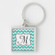 Parties scintillant Turquoise moderne Chevron Zig Zag Stripe Monogramme Porte - clé initial