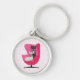 Ce porte - clé a deux jolis chats du milieu du siècle assis dans une chaise rose vif sur un arrière - plan blanc avec des pois roses vibrants.